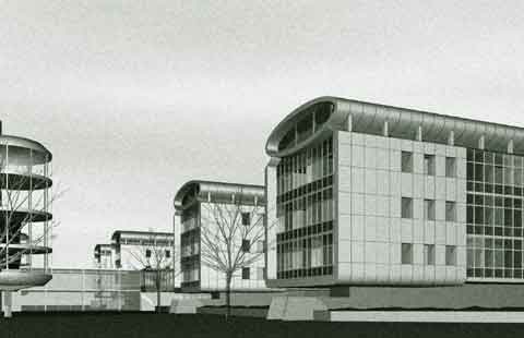 Wettbewerb Biotechnologie-Biomedizin-Zentrum Leipzig Entwurf: Architekturbüro Christoph Thiel, Münster Visualisierung: Karsten Diestel