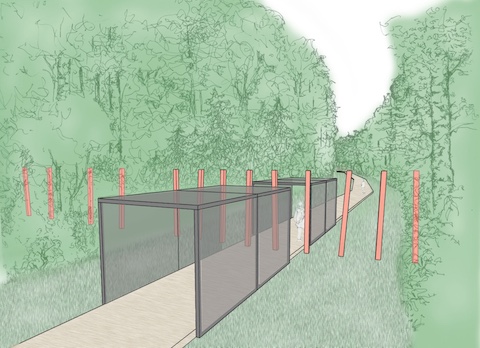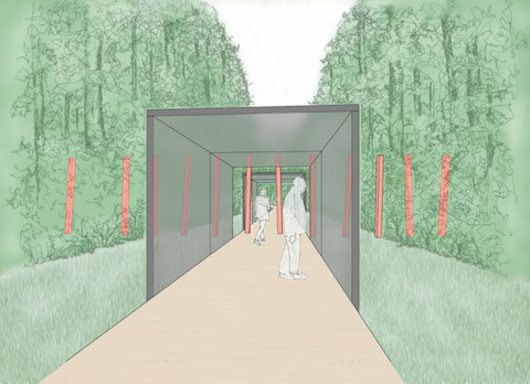 Konzentrationslagers zu erkennen. Die entstandene Wald- und Parklandschaft