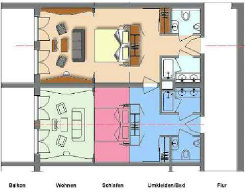 voneinander abgetrennte Funktionsbereiche die sich symmetrisch entlang